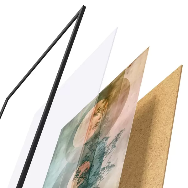 Plakatą sudaro rėmas, pleksiklas, atspausdintas vaizdas ir medžio drožlių plokštės pagrindas. Plakatą galima iš karto pakabinti ant sienos dėl kitoje pusėje esančių laikiklių.