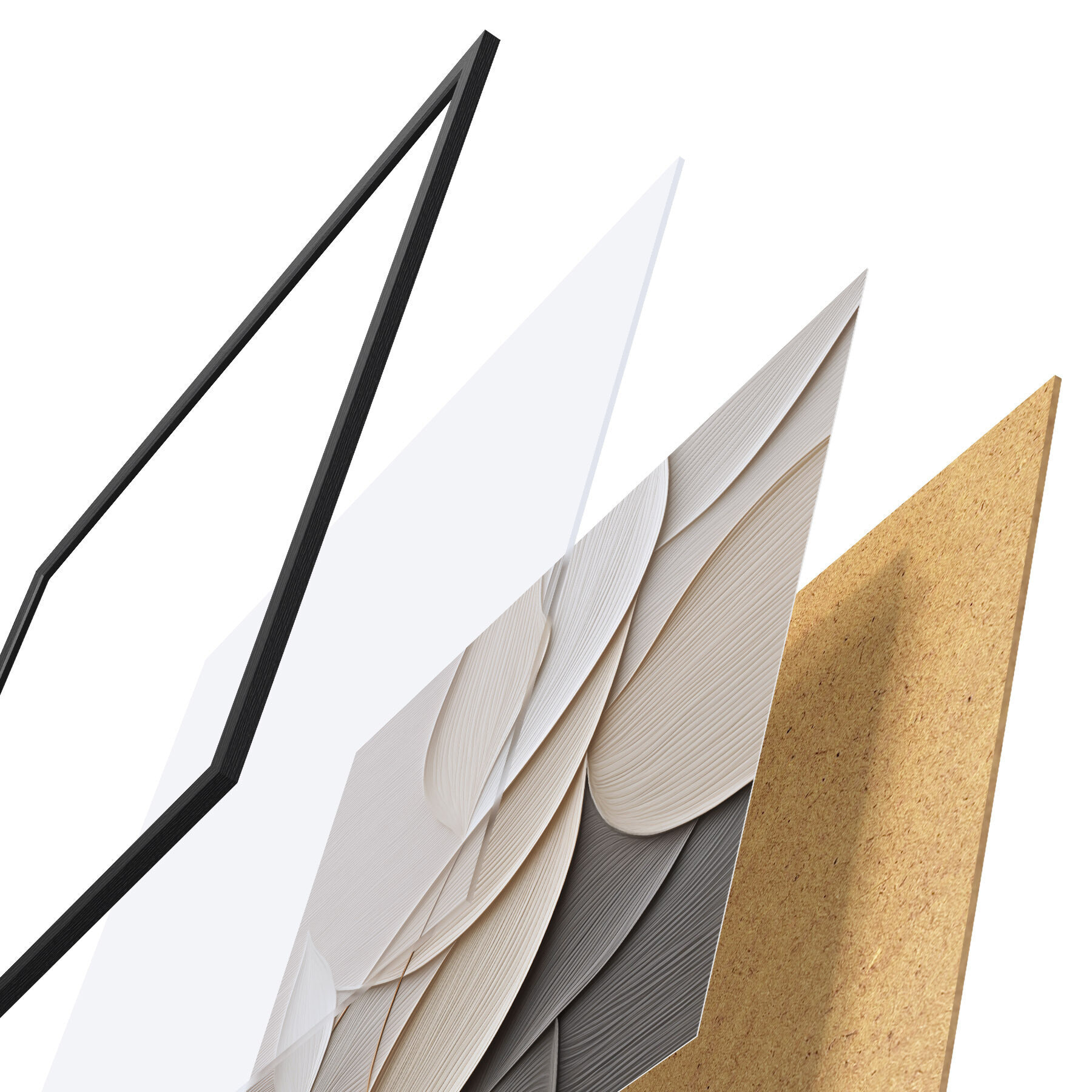 Plakatą sudaro rėmas, pleksiklas, atspausdintas vaizdas ir medžio drožlių plokštės pagrindas. Plakatą galima iš karto pakabinti ant sienos dėl kitoje pusėje esančių laikiklių.