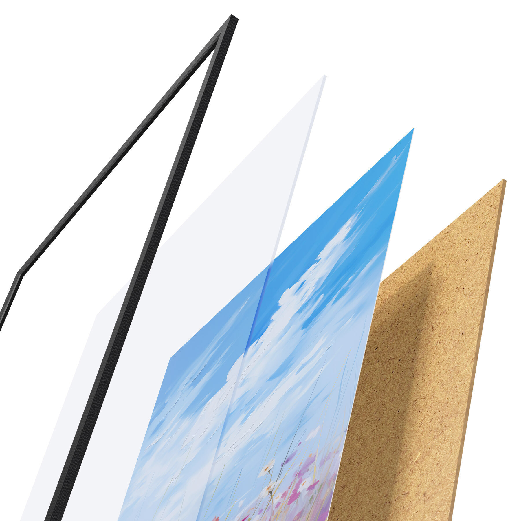 Plakatą sudaro rėmas, pleksiklas, atspausdintas vaizdas ir medžio drožlių plokštės pagrindas. Plakatą galima iš karto pakabinti ant sienos dėl kitoje pusėje esančių laikiklių.