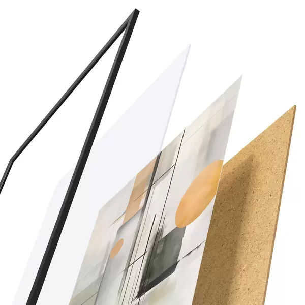 Plakatą sudaro rėmas, pleksiklas, atspausdintas vaizdas ir medžio drožlių plokštės pagrindas. Plakatą galima iš karto pakabinti ant sienos dėl kitoje pusėje esančių laikiklių.