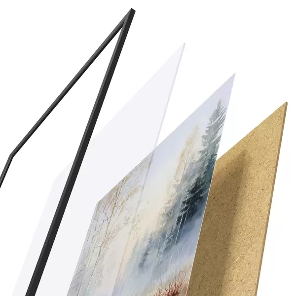 Plakatą sudaro rėmas, pleksiklas, atspausdintas vaizdas ir medžio drožlių plokštės pagrindas. Plakatą galima iš karto pakabinti ant sienos dėl kitoje pusėje esančių laikiklių.