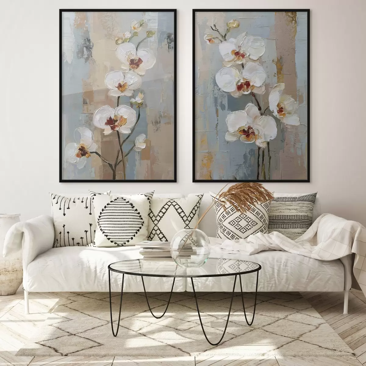 Plakatas baltos orchidėjos gėlės aliejaus tapybos stiliumi Ne d01175