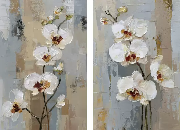 Plakatas baltos orchidėjos gėlės aliejaus tapybos stiliumi d01175