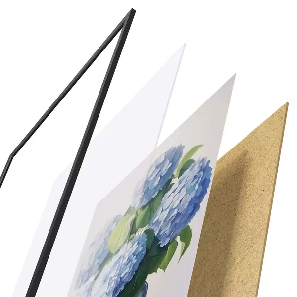 Plakatą sudaro rėmas, pleksiklas, atspausdintas vaizdas ir medžio drožlių plokštės pagrindas. Plakatą galima iš karto pakabinti ant sienos dėl kitoje pusėje esančių laikiklių.