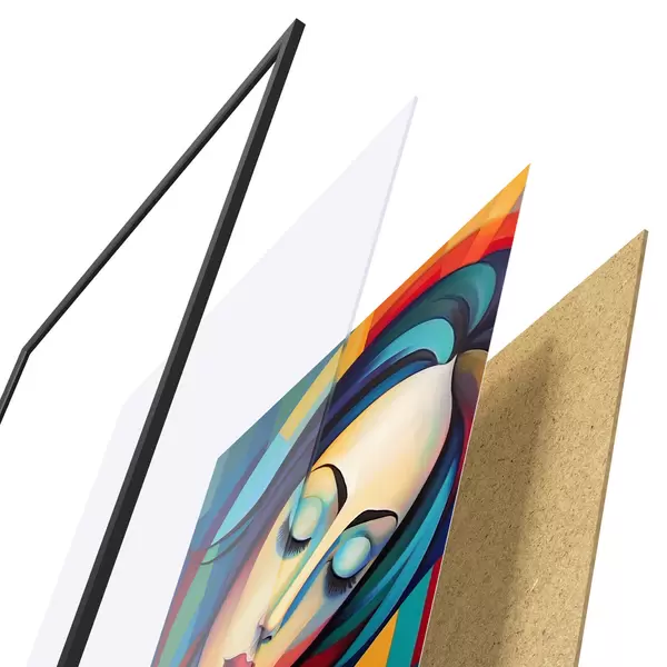 Plakatą sudaro rėmas, pleksiklas, atspausdintas vaizdas ir medžio drožlių plokštės pagrindas. Plakatą galima iš karto pakabinti ant sienos dėl kitoje pusėje esančių laikiklių.