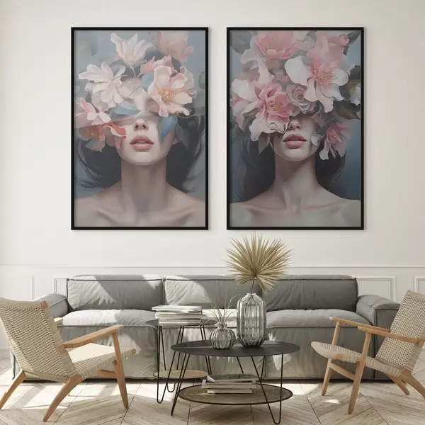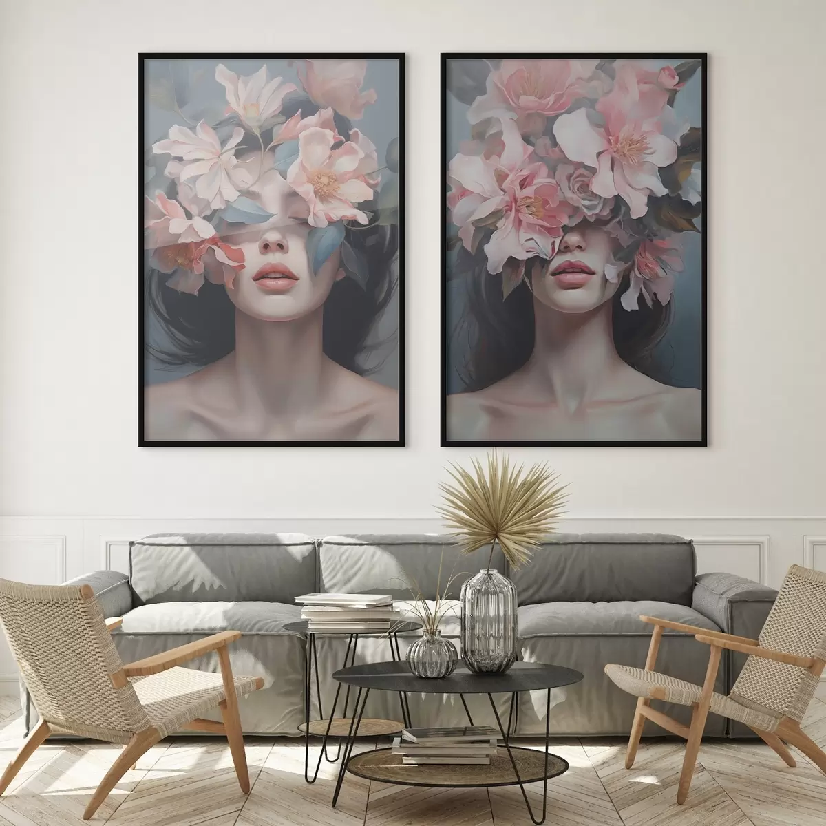 Plakatas Abstraktus moters portretas su gėlėmis Ne d01221