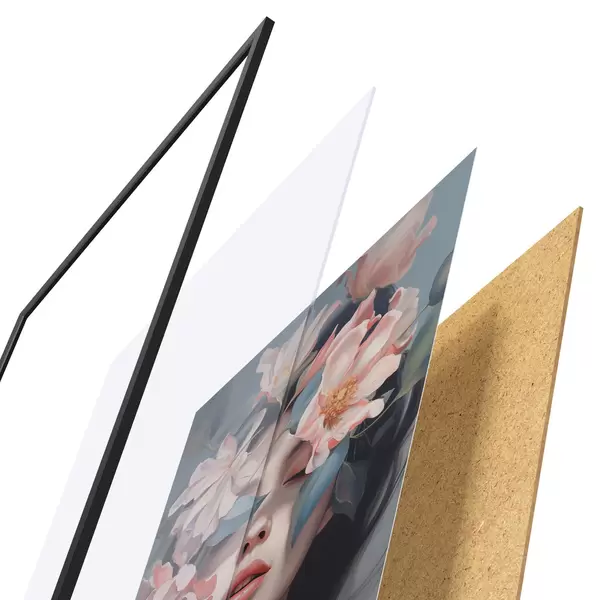 Plakatą sudaro rėmas, pleksiklas, atspausdintas vaizdas ir medžio drožlių plokštės pagrindas. Plakatą galima iš karto pakabinti ant sienos dėl kitoje pusėje esančių laikiklių.