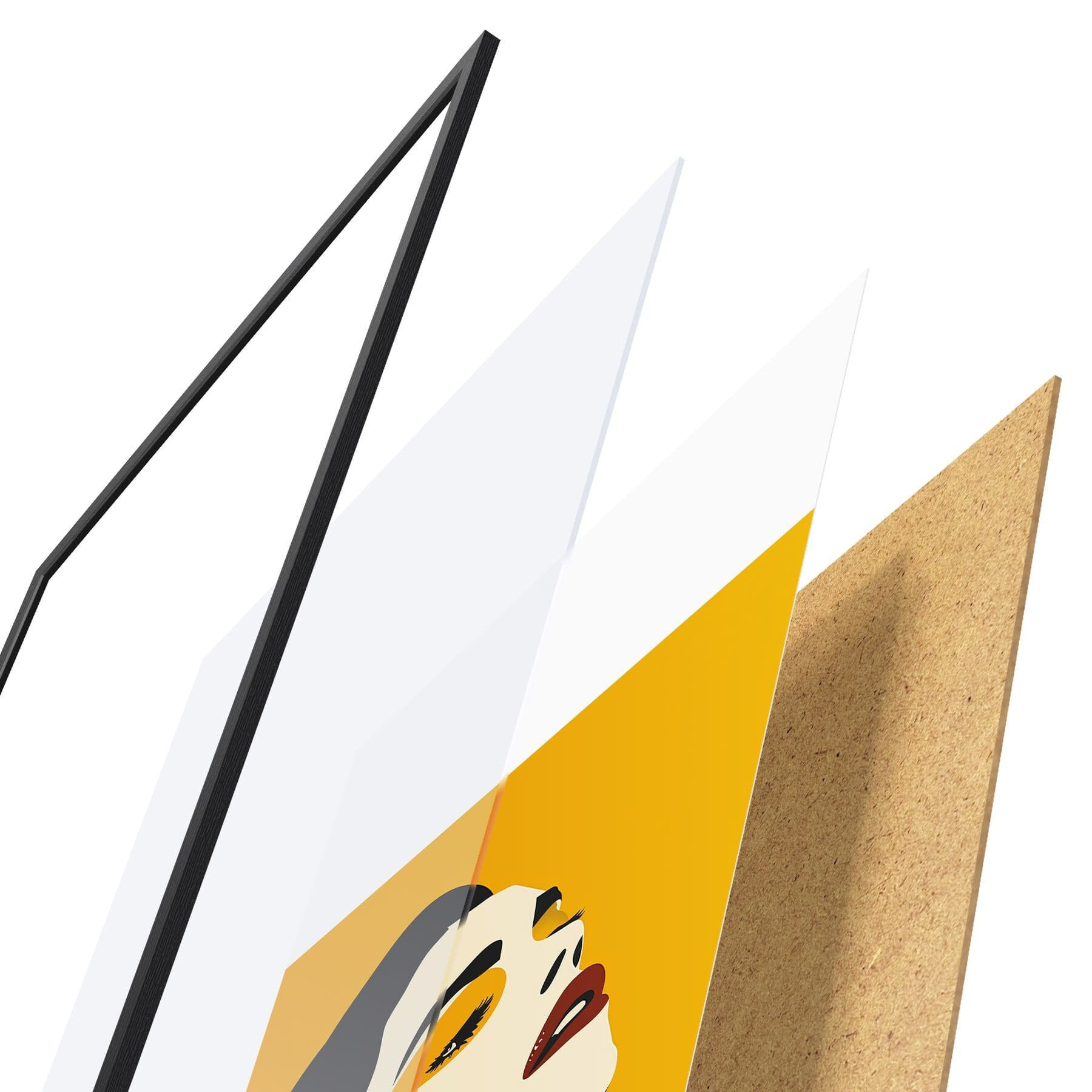 Plakatą sudaro rėmas, pleksiklas, atspausdintas vaizdas ir medžio drožlių plokštės pagrindas. Plakatą galima iš karto pakabinti ant sienos dėl kitoje pusėje esančių laikiklių.