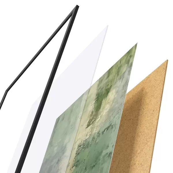 Plakatą sudaro rėmas, pleksiklas, atspausdintas vaizdas ir medžio drožlių plokštės pagrindas. Plakatą galima iš karto pakabinti ant sienos dėl kitoje pusėje esančių laikiklių.