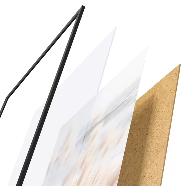 Plakatą sudaro rėmas, pleksiklas, atspausdintas vaizdas ir medžio drožlių plokštės pagrindas. Plakatą galima iš karto pakabinti ant sienos dėl kitoje pusėje esančių laikiklių.