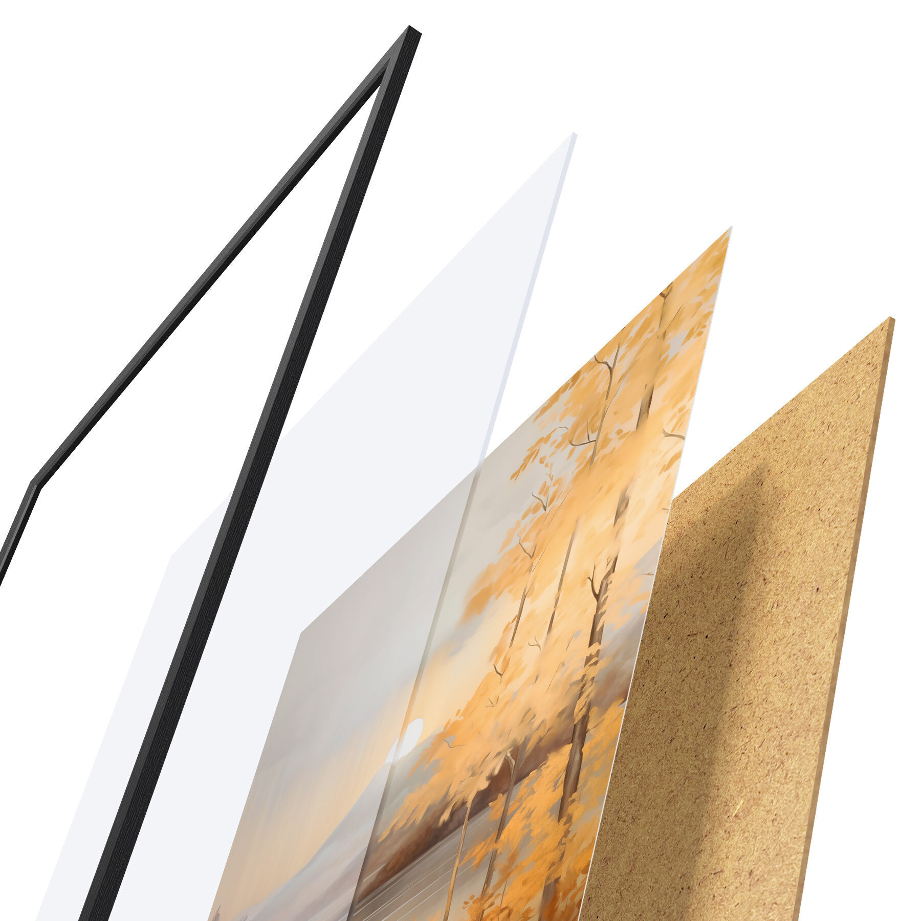 Plakatą sudaro rėmas, pleksiklas, atspausdintas vaizdas ir medžio drožlių plokštės pagrindas. Plakatą galima iš karto pakabinti ant sienos dėl kitoje pusėje esančių laikiklių.