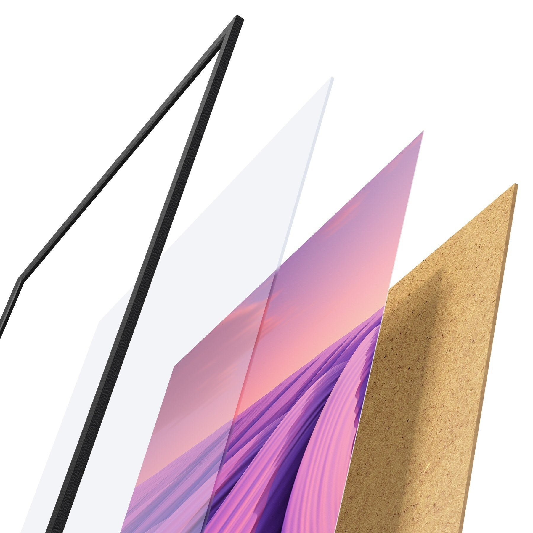 Plakatą sudaro rėmas, pleksiklas, atspausdintas vaizdas ir medžio drožlių plokštės pagrindas. Plakatą galima iš karto pakabinti ant sienos dėl kitoje pusėje esančių laikiklių.
