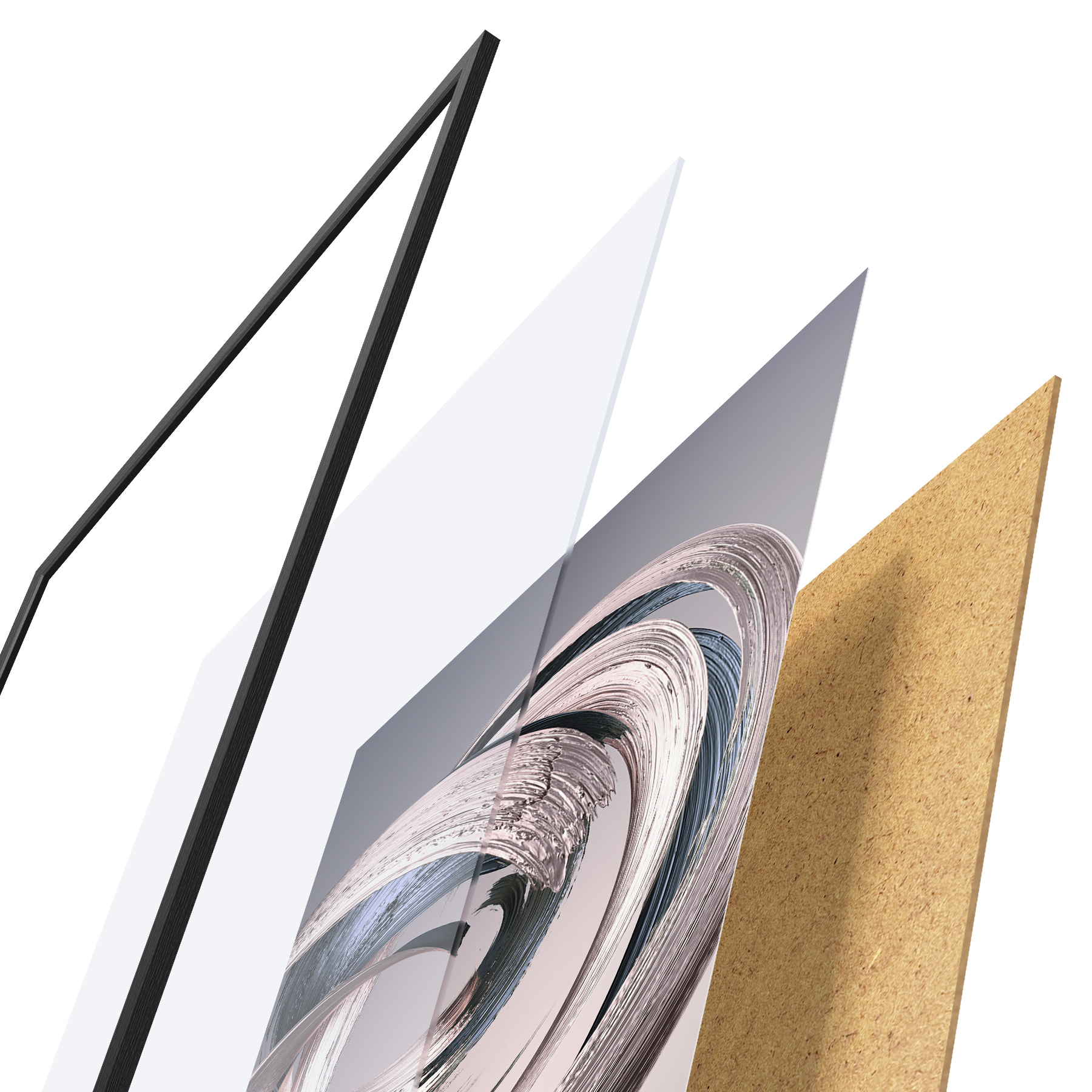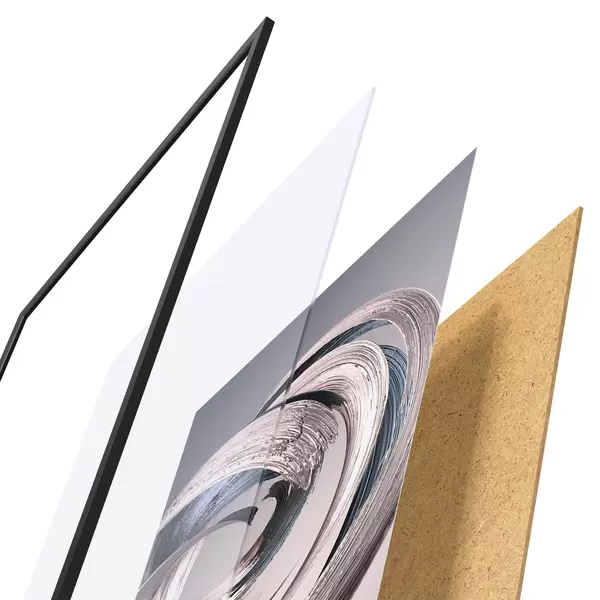 Plakatą sudaro rėmas, pleksiklas, atspausdintas vaizdas ir medžio drožlių plokštės pagrindas. Plakatą galima iš karto pakabinti ant sienos dėl kitoje pusėje esančių laikiklių.