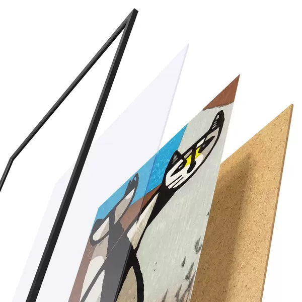 Plakatą sudaro rėmas, pleksiklas, atspausdintas vaizdas ir medžio drožlių plokštės pagrindas. Plakatą galima iš karto pakabinti ant sienos dėl kitoje pusėje esančių laikiklių.