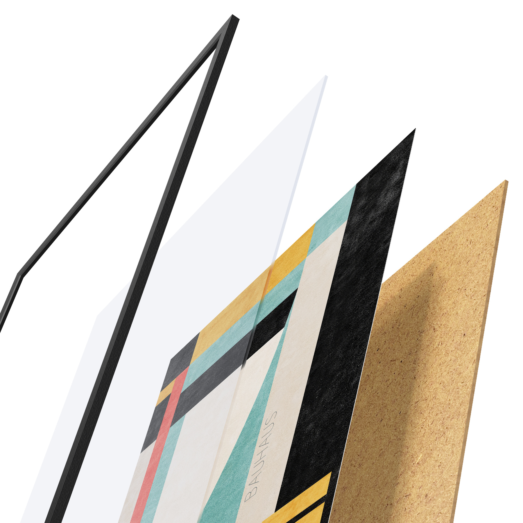 Plakatą sudaro rėmas, pleksiklas, atspausdintas vaizdas ir medžio drožlių plokštės pagrindas. Plakatą galima iš karto pakabinti ant sienos dėl kitoje pusėje esančių laikiklių.