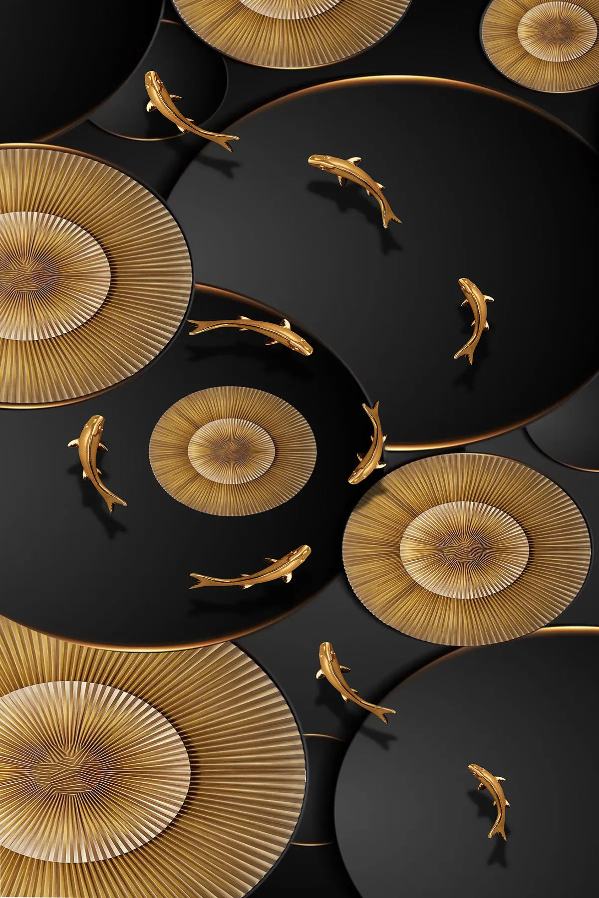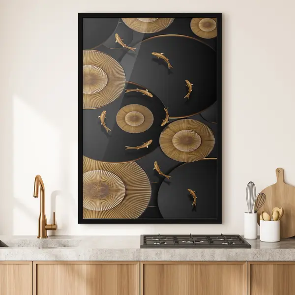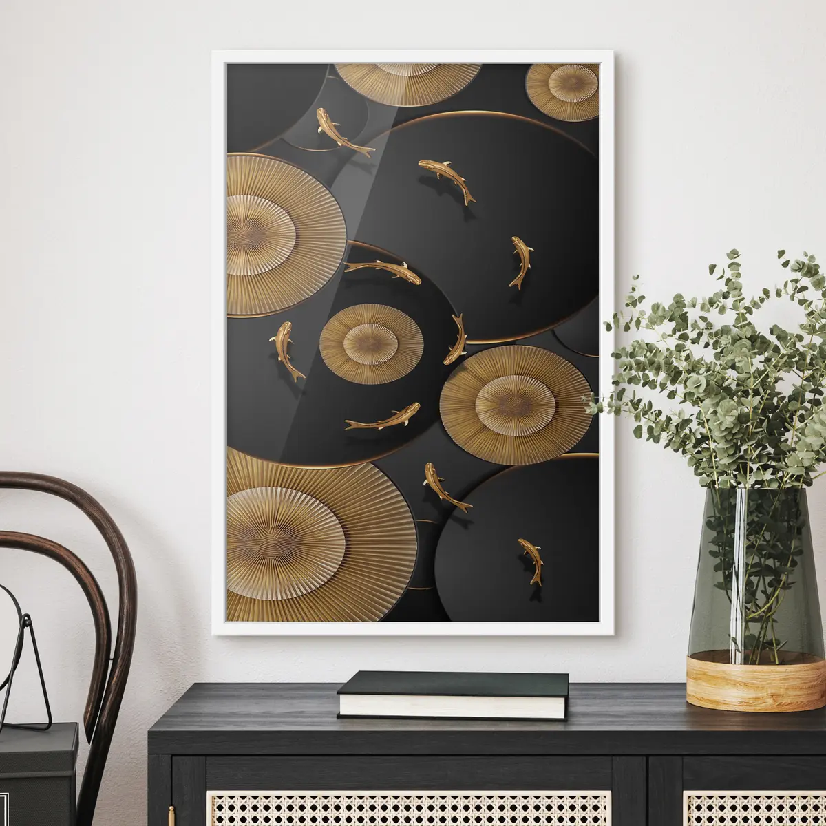 Plakatas Ramios koi, plaukiojančios elegantiškais ratais f02509