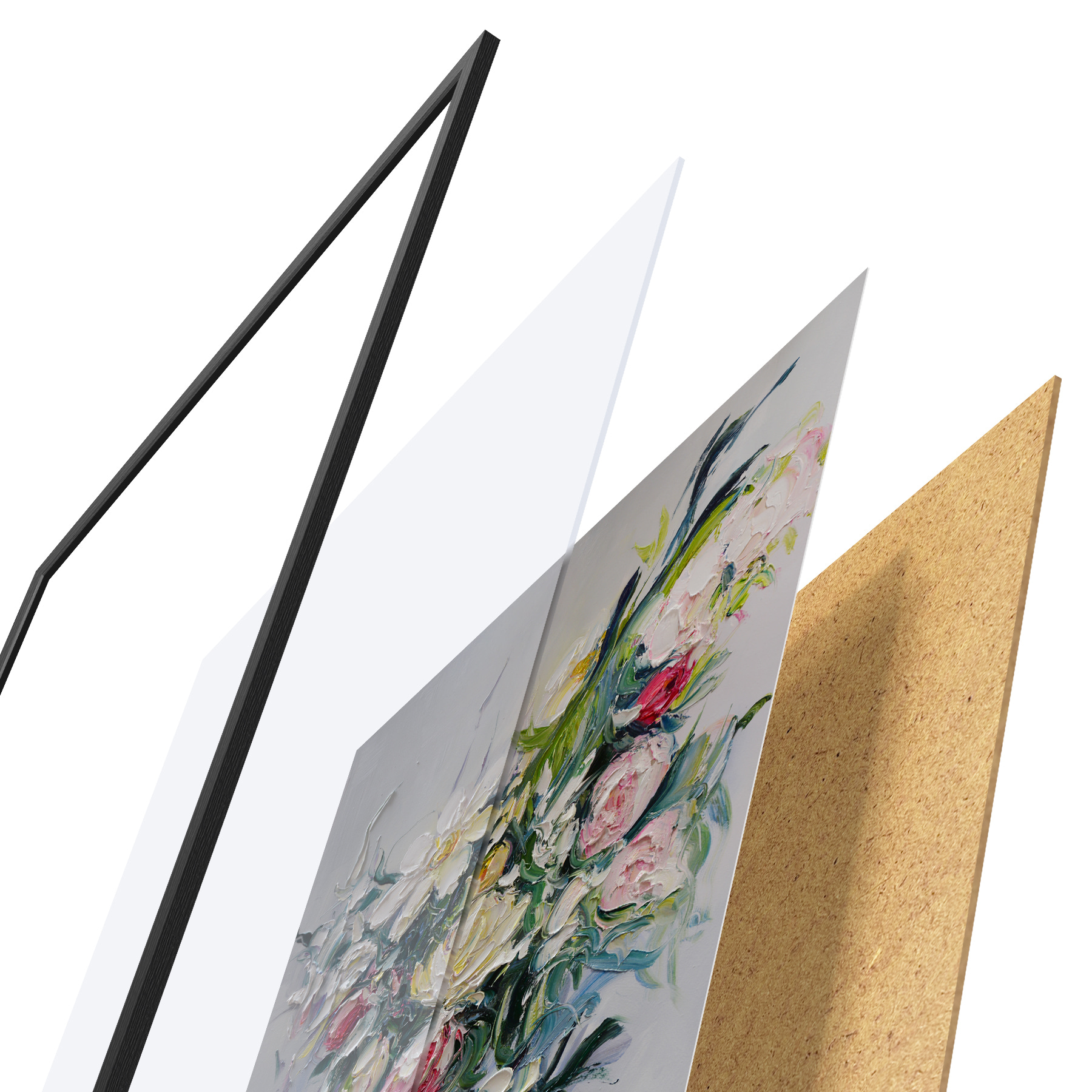 Plakatą sudaro rėmas, pleksiklas, atspausdintas vaizdas ir medžio drožlių plokštės pagrindas. Plakatą galima iš karto pakabinti ant sienos dėl kitoje pusėje esančių laikiklių.