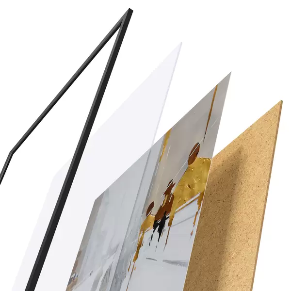 Plakatą sudaro rėmas, pleksiklas, atspausdintas vaizdas ir medžio drožlių plokštės pagrindas. Plakatą galima iš karto pakabinti ant sienos dėl kitoje pusėje esančių laikiklių.