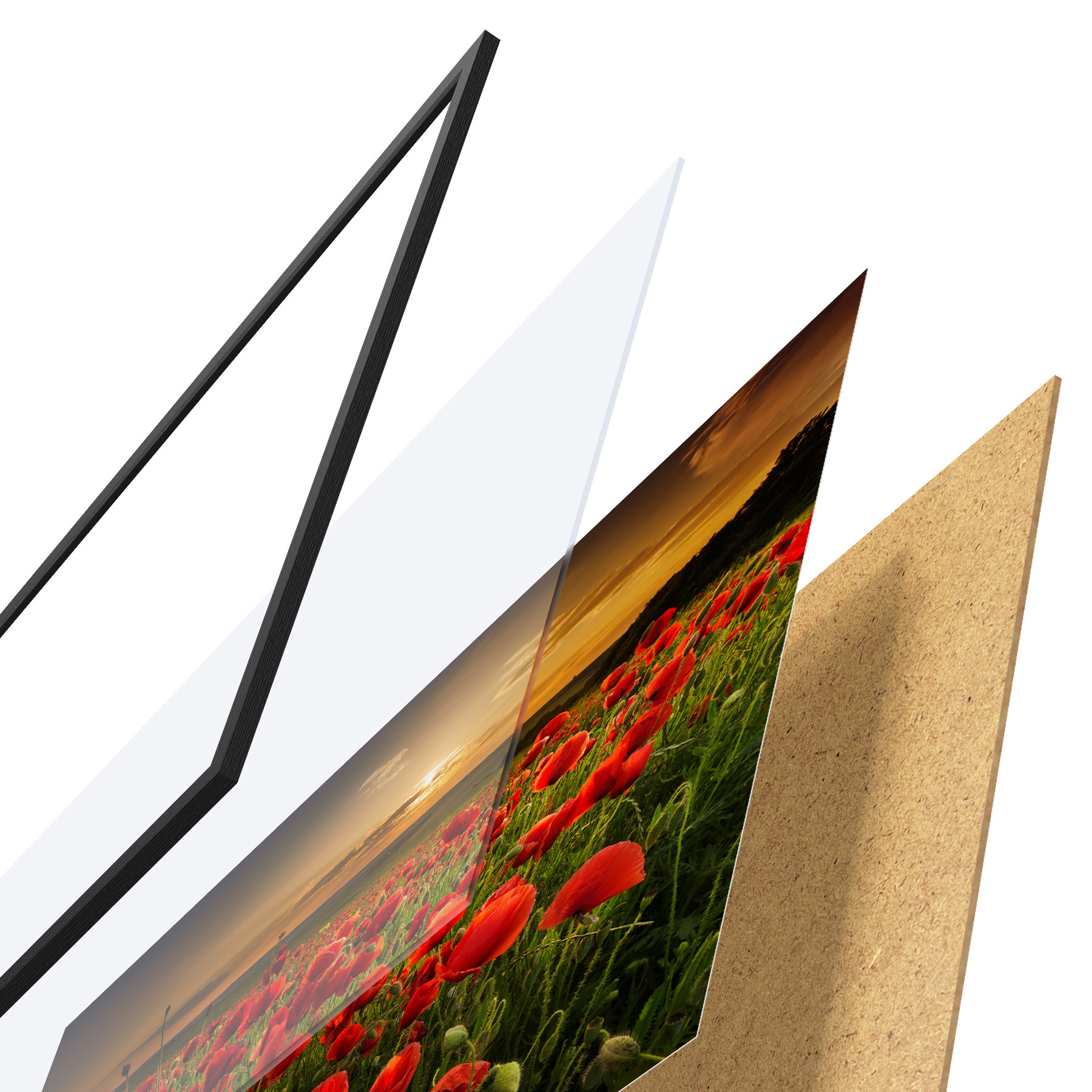 Plakatą sudaro rėmas, pleksiklas, atspausdintas vaizdas ir medžio drožlių plokštės pagrindas. Plakatą galima iš karto pakabinti ant sienos dėl kitoje pusėje esančių laikiklių.