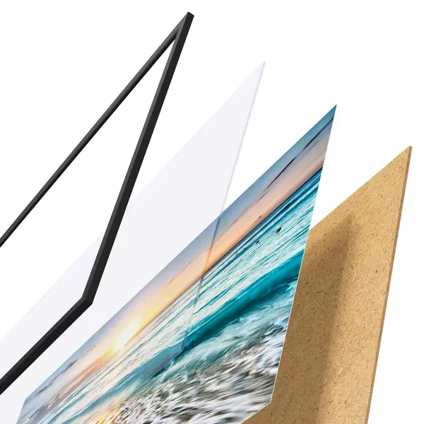 Plakatą sudaro rėmas, pleksiklas, atspausdintas vaizdas ir medžio drožlių plokštės pagrindas. Plakatą galima iš karto pakabinti ant sienos dėl kitoje pusėje esančių laikiklių.