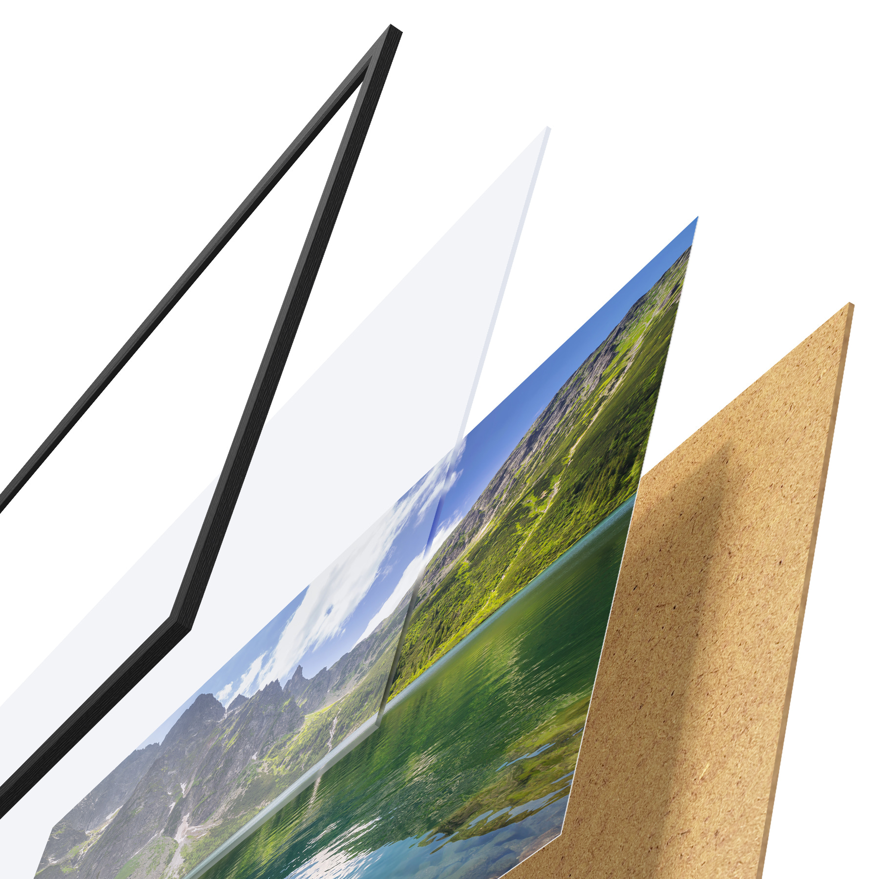 Plakatą sudaro rėmas, pleksiklas, atspausdintas vaizdas ir medžio drožlių plokštės pagrindas. Plakatą galima iš karto pakabinti ant sienos dėl kitoje pusėje esančių laikiklių.