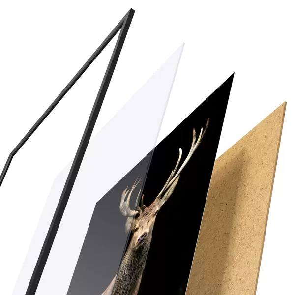 Plakatą sudaro rėmas, pleksiklas, atspausdintas vaizdas ir medžio drožlių plokštės pagrindas. Plakatą galima iš karto pakabinti ant sienos dėl kitoje pusėje esančių laikiklių.