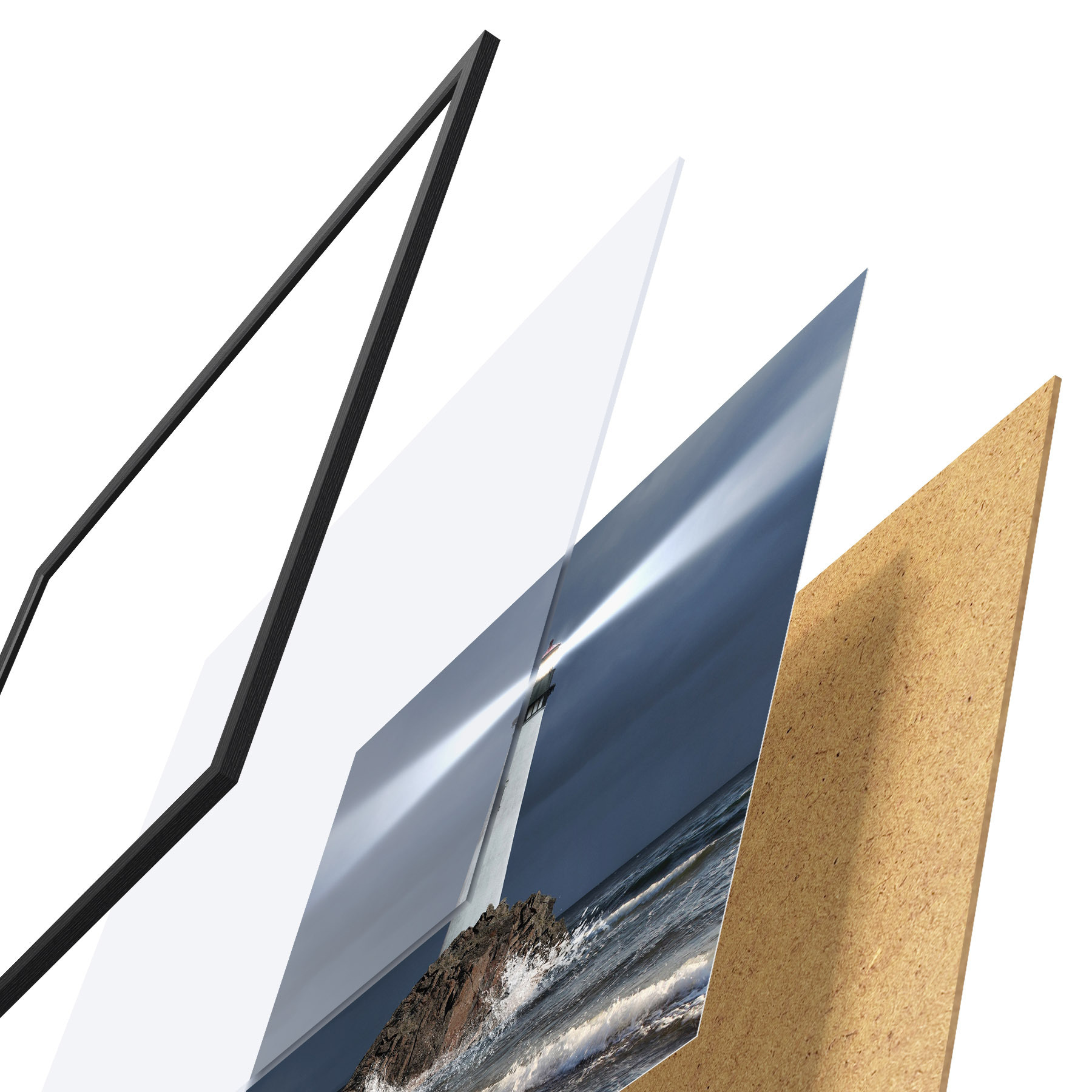 Plakatą sudaro rėmas, pleksiklas, atspausdintas vaizdas ir medžio drožlių plokštės pagrindas. Plakatą galima iš karto pakabinti ant sienos dėl kitoje pusėje esančių laikiklių.