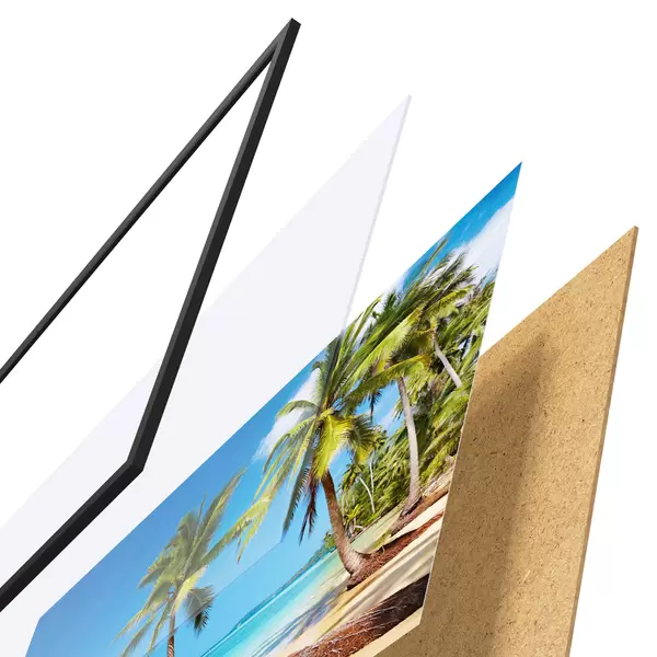 Plakatą sudaro rėmas, pleksiklas, atspausdintas vaizdas ir medžio drožlių plokštės pagrindas. Plakatą galima iš karto pakabinti ant sienos dėl kitoje pusėje esančių laikiklių.
