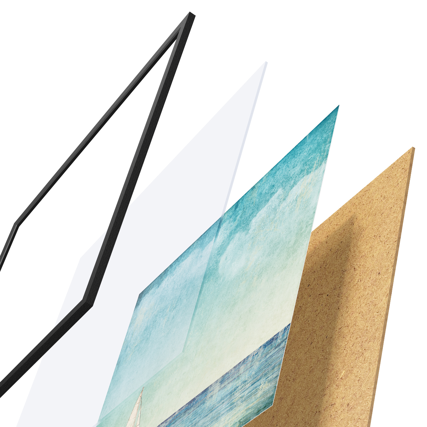 Plakatą sudaro rėmas, pleksiklas, atspausdintas vaizdas ir medžio drožlių plokštės pagrindas. Plakatą galima iš karto pakabinti ant sienos dėl kitoje pusėje esančių laikiklių.
