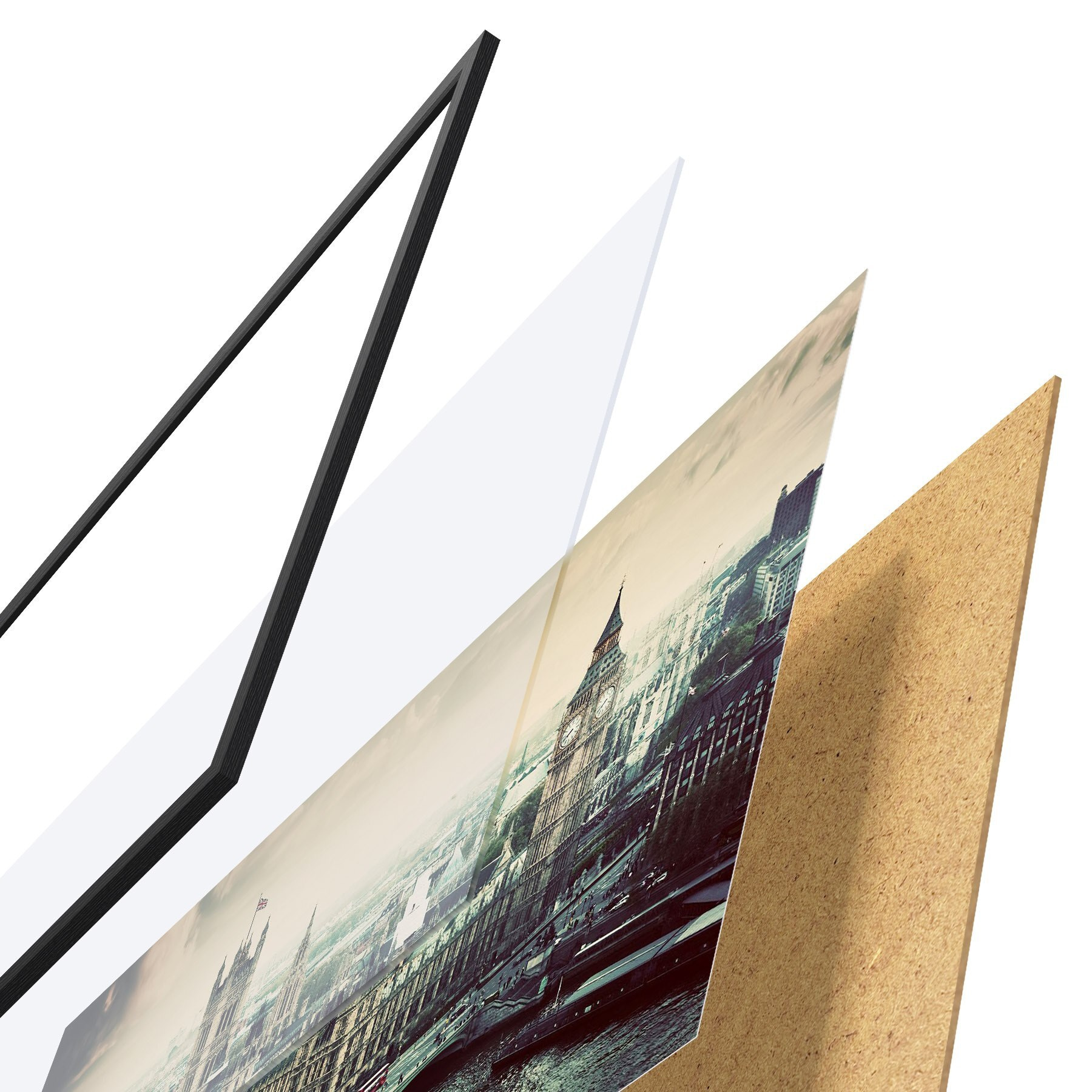 Plakatą sudaro rėmas, pleksiklas, atspausdintas vaizdas ir medžio drožlių plokštės pagrindas. Plakatą galima iš karto pakabinti ant sienos dėl kitoje pusėje esančių laikiklių.