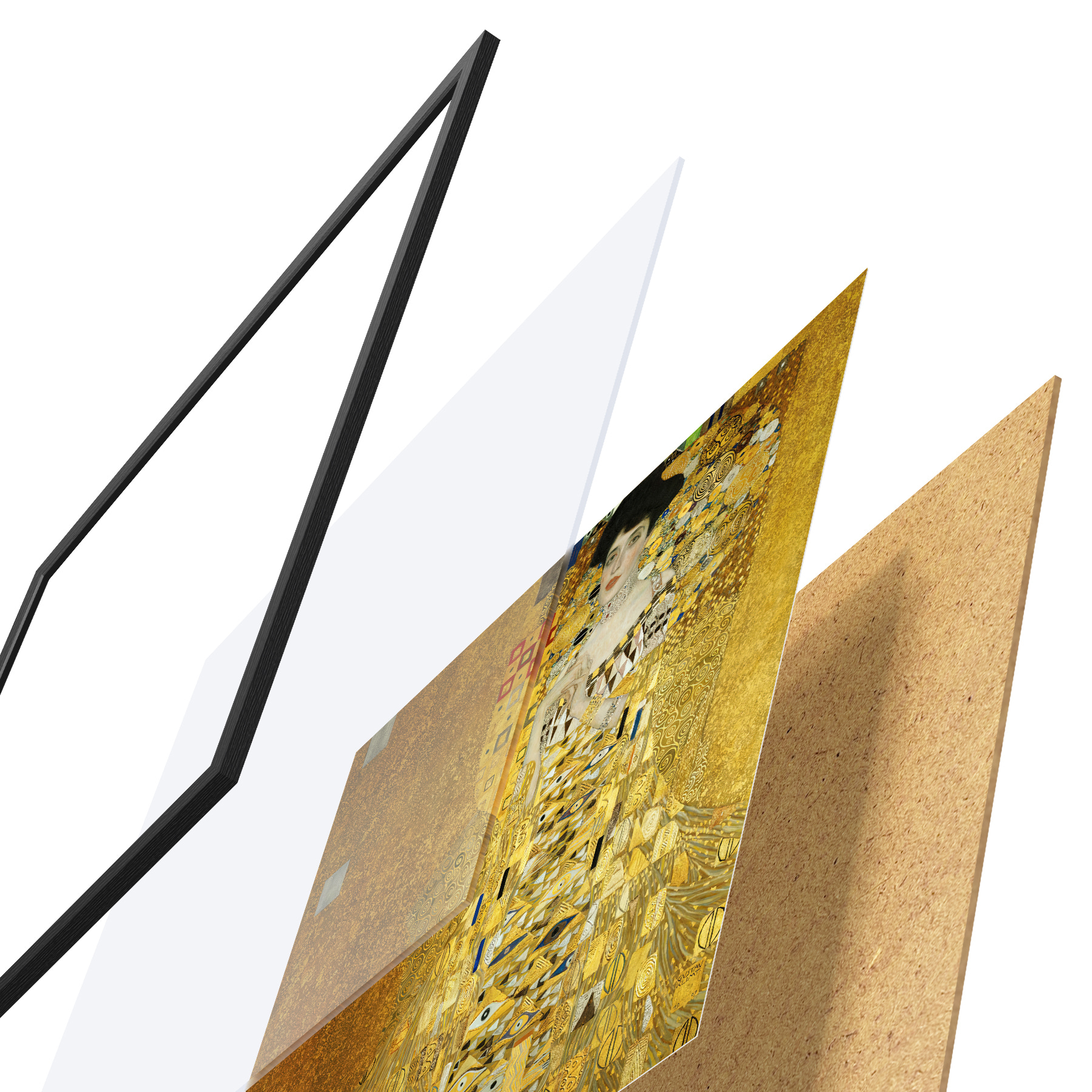 Plakatą sudaro rėmas, pleksiklas, atspausdintas vaizdas ir medžio drožlių plokštės pagrindas. Plakatą galima iš karto pakabinti ant sienos dėl kitoje pusėje esančių laikiklių.