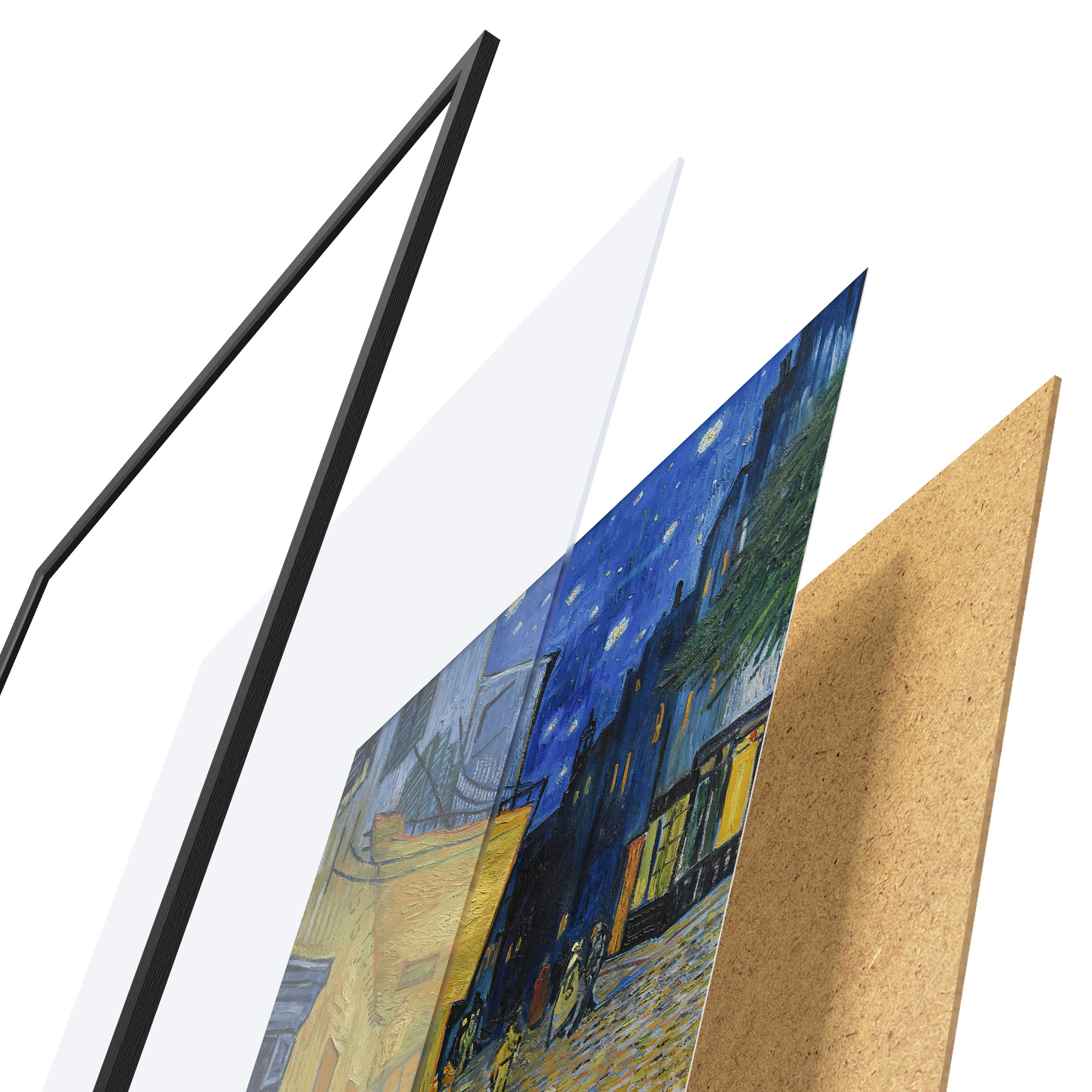 Plakatą sudaro rėmas, pleksiklas, atspausdintas vaizdas ir medžio drožlių plokštės pagrindas. Plakatą galima iš karto pakabinti ant sienos dėl kitoje pusėje esančių laikiklių.