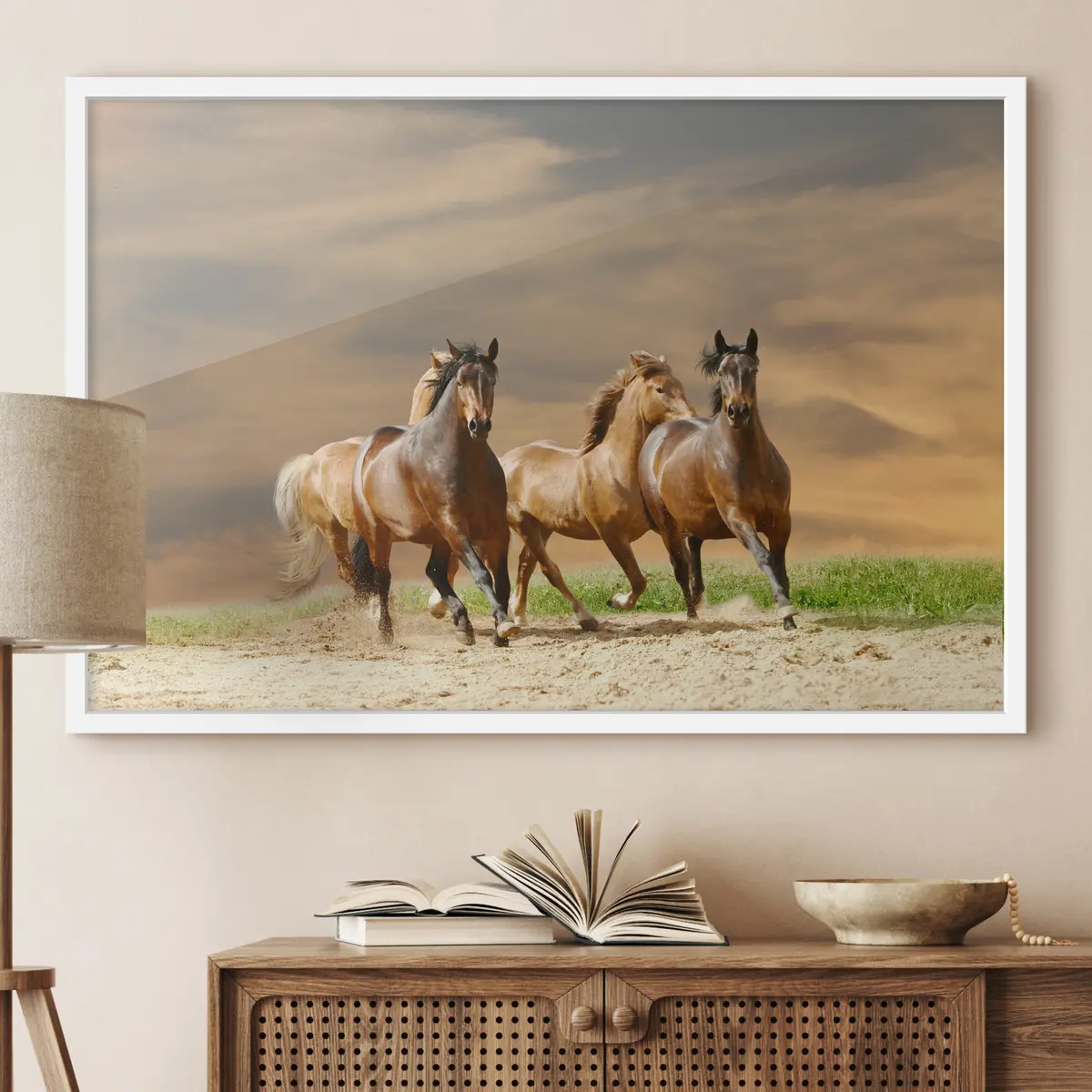 Plakatas Laisvai bėga saulėlydžio švytėjime f12435