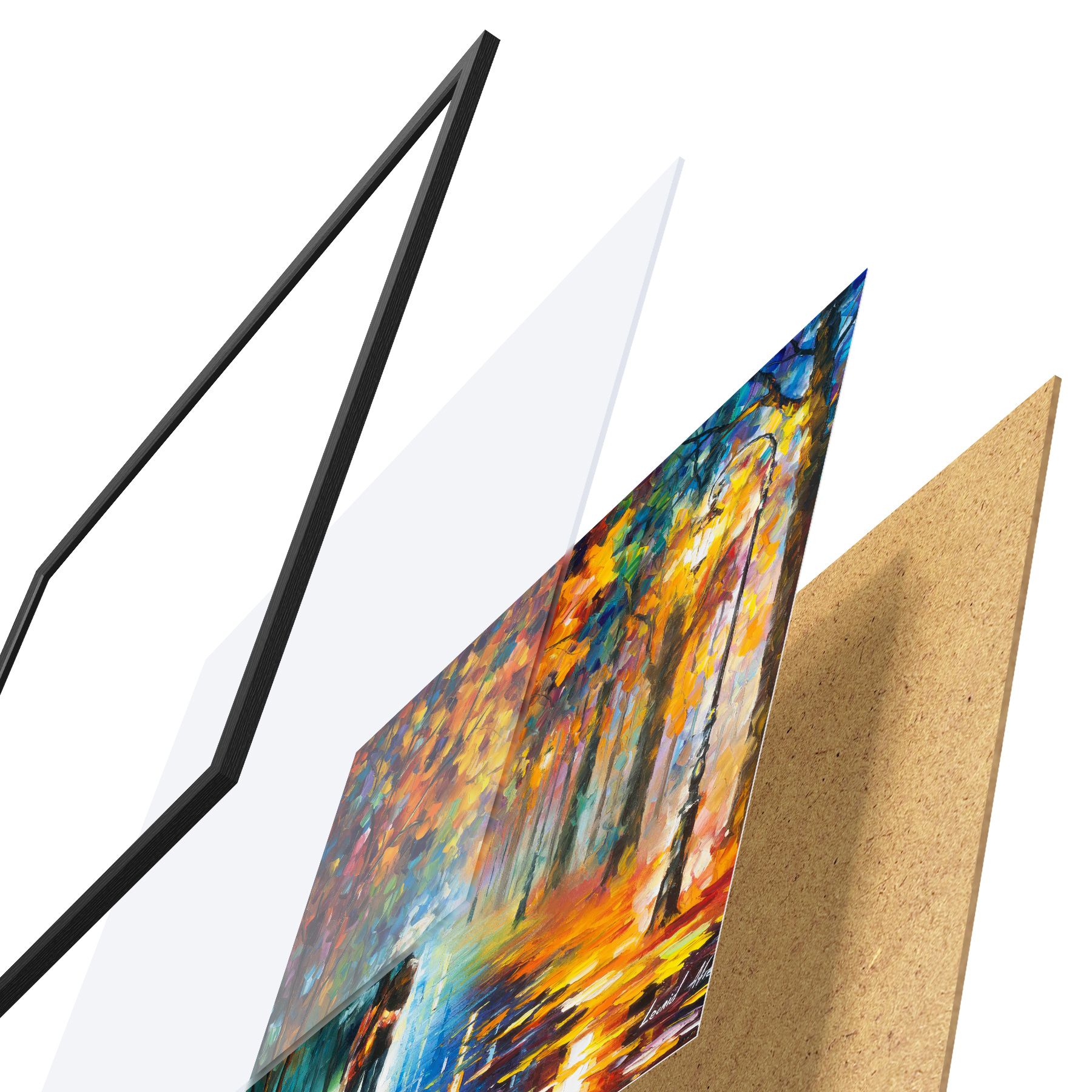 Plakatą sudaro rėmas, pleksiklas, atspausdintas vaizdas ir medžio drožlių plokštės pagrindas. Plakatą galima iš karto pakabinti ant sienos dėl kitoje pusėje esančių laikiklių.