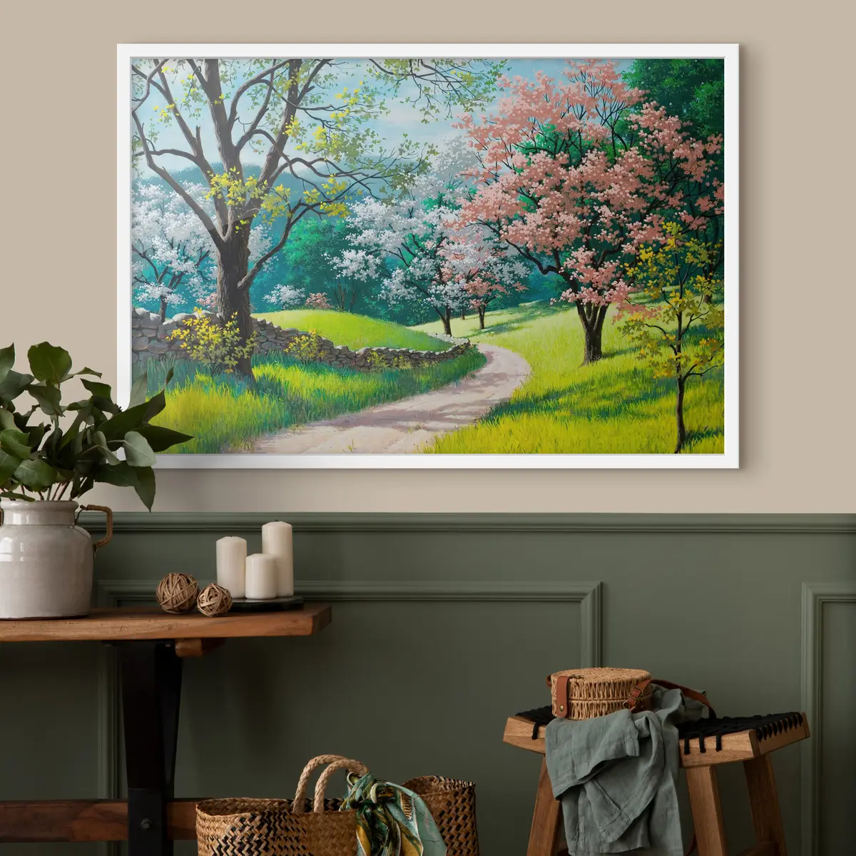 Plakatas Žydintys medžiai palei vingiuotą kelią f15350