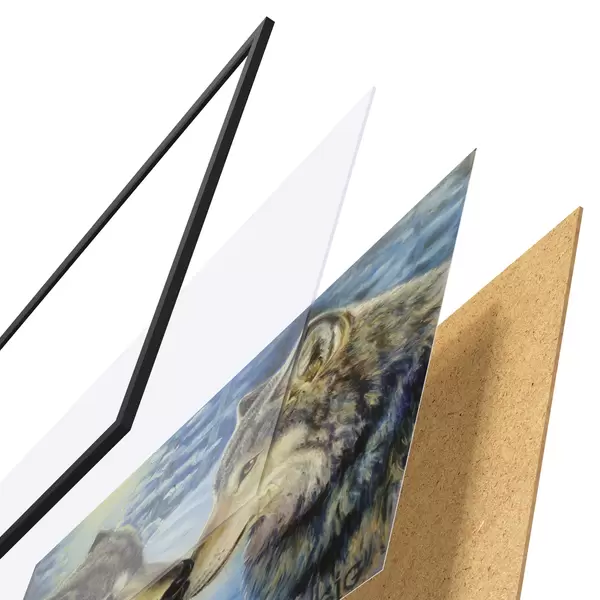 Plakatą sudaro rėmas, pleksiklas, atspausdintas vaizdas ir medžio drožlių plokštės pagrindas. Plakatą galima iš karto pakabinti ant sienos dėl kitoje pusėje esančių laikiklių.