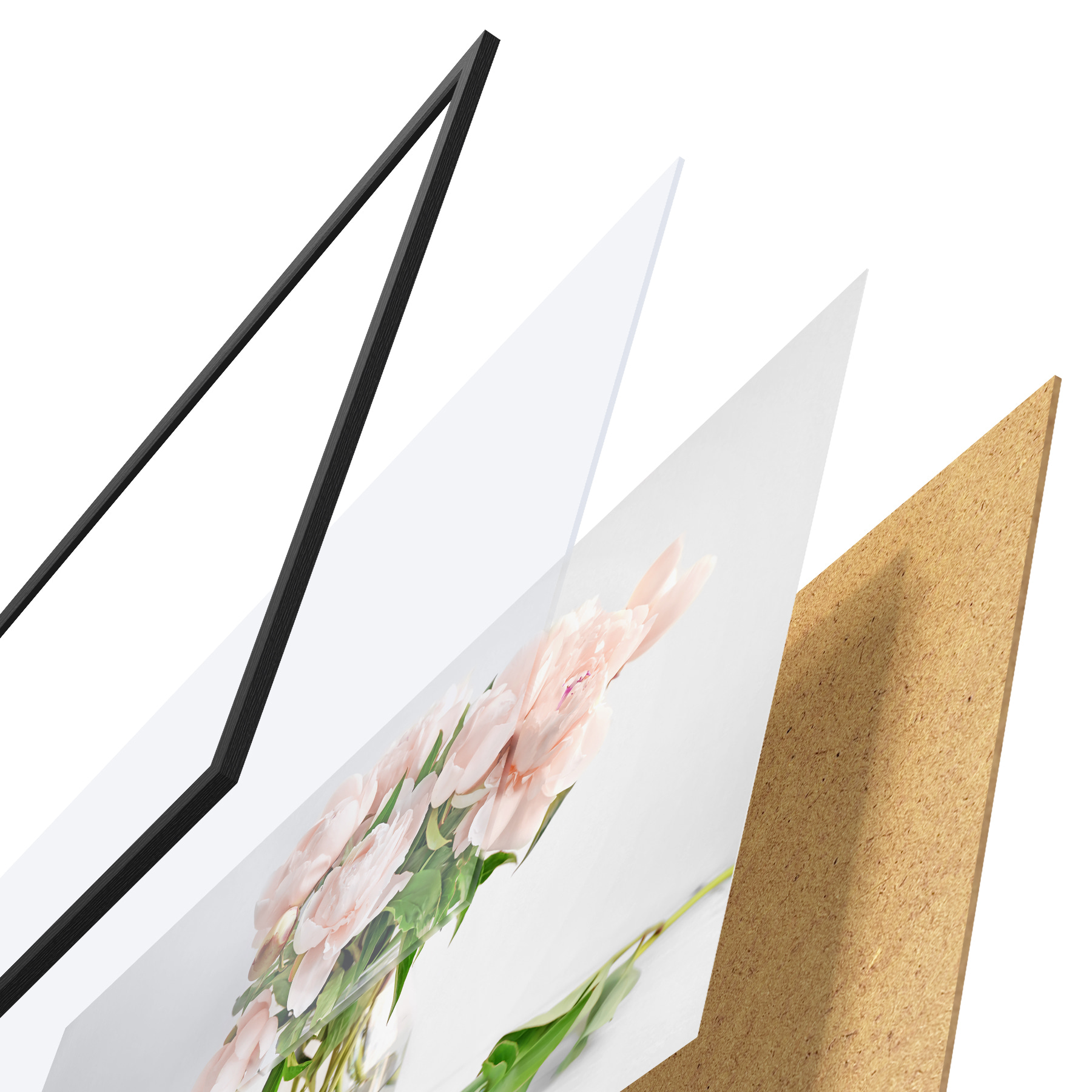 Plakatą sudaro rėmas, pleksiklas, atspausdintas vaizdas ir medžio drožlių plokštės pagrindas. Plakatą galima iš karto pakabinti ant sienos dėl kitoje pusėje esančių laikiklių.