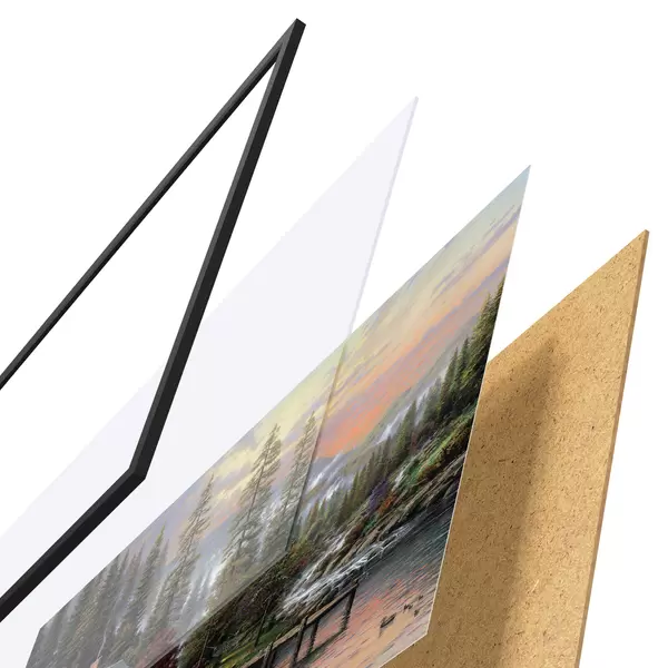 Plakatą sudaro rėmas, pleksiklas, atspausdintas vaizdas ir medžio drožlių plokštės pagrindas. Plakatą galima iš karto pakabinti ant sienos dėl kitoje pusėje esančių laikiklių.
