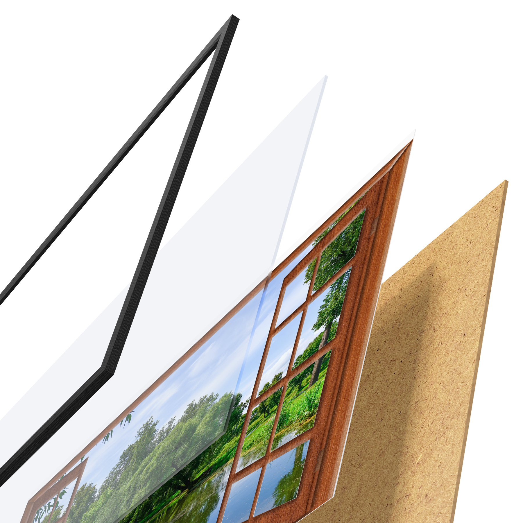 Plakatą sudaro rėmas, pleksiklas, atspausdintas vaizdas ir medžio drožlių plokštės pagrindas. Plakatą galima iš karto pakabinti ant sienos dėl kitoje pusėje esančių laikiklių.