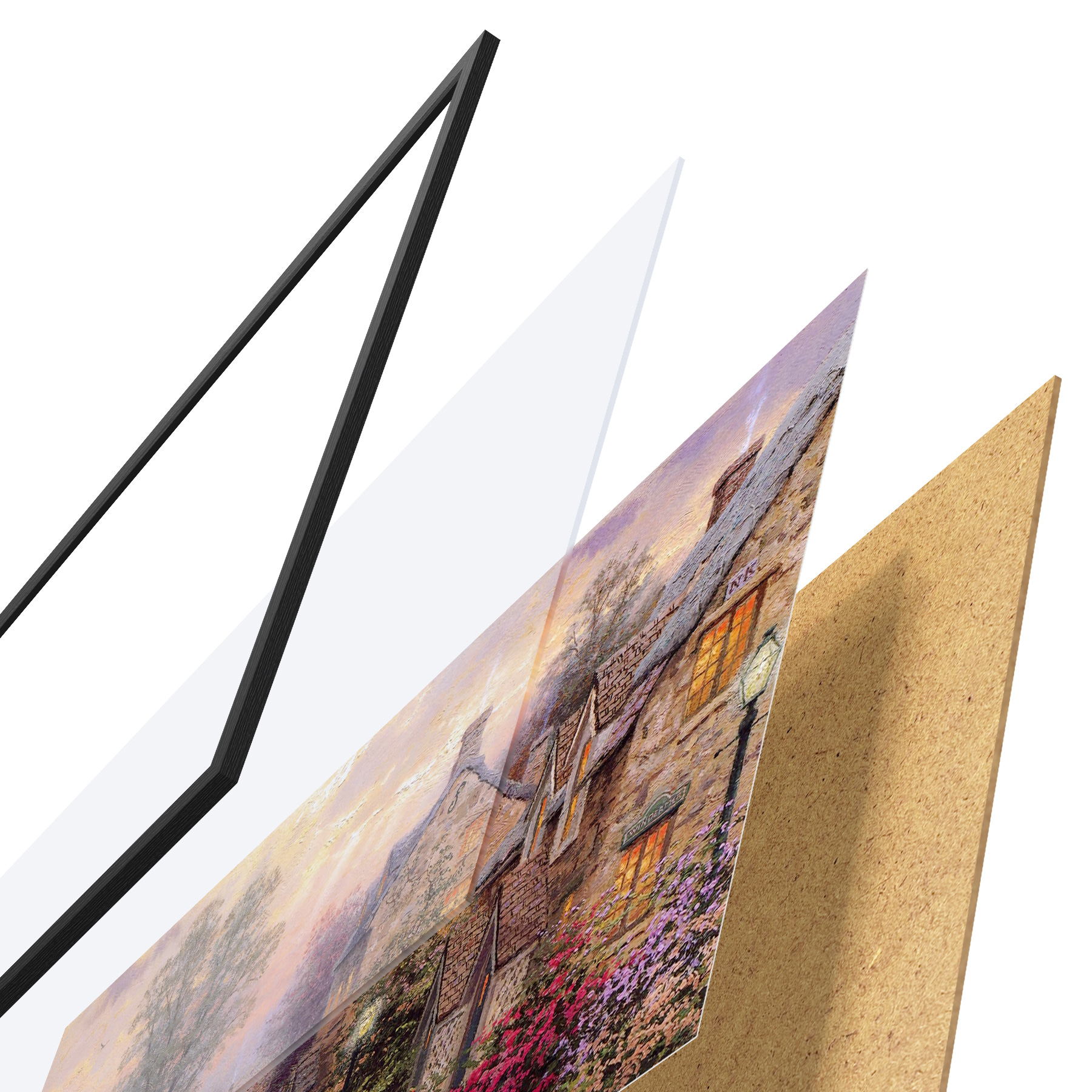Plakatą sudaro rėmas, pleksiklas, atspausdintas vaizdas ir medžio drožlių plokštės pagrindas. Plakatą galima iš karto pakabinti ant sienos dėl kitoje pusėje esančių laikiklių.