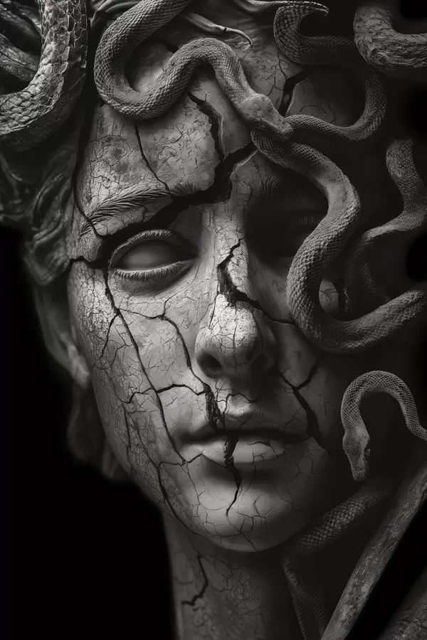 Plakatas Juodai balta Medūzos gorgono skulptūra Ne f26128