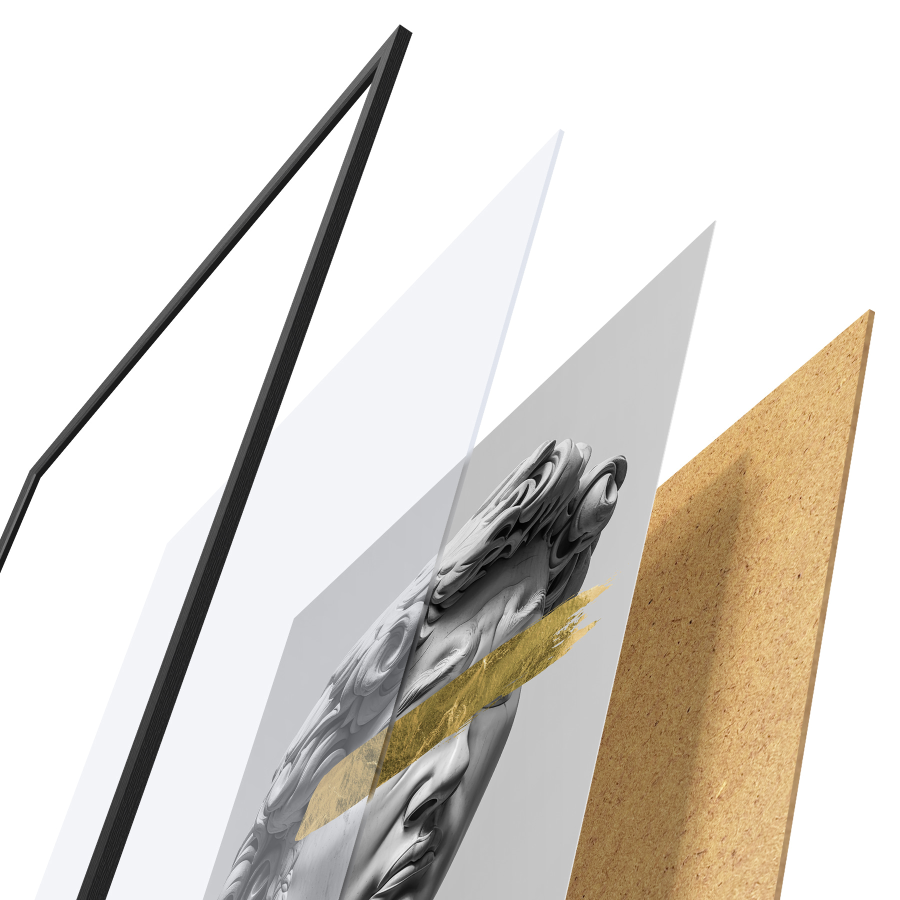 Plakatą sudaro rėmas, pleksiklas, atspausdintas vaizdas ir medžio drožlių plokštės pagrindas. Plakatą galima iš karto pakabinti ant sienos dėl kitoje pusėje esančių laikiklių.
