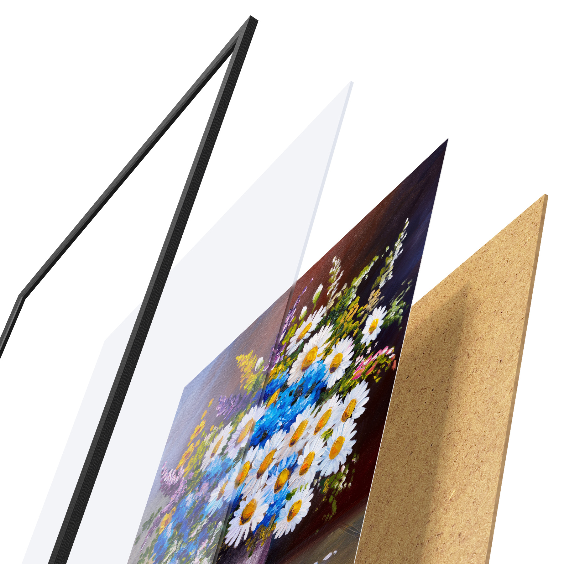Plakatą sudaro rėmas, pleksiklas, atspausdintas vaizdas ir medžio drožlių plokštės pagrindas. Plakatą galima iš karto pakabinti ant sienos dėl kitoje pusėje esančių laikiklių.