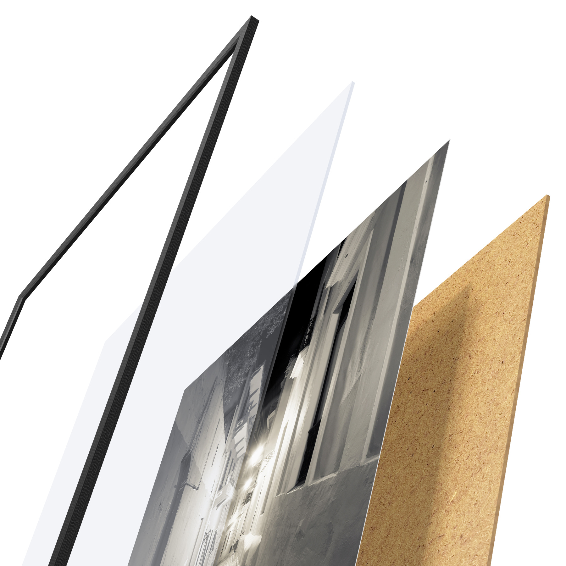 Plakatą sudaro rėmas, pleksiklas, atspausdintas vaizdas ir medžio drožlių plokštės pagrindas. Plakatą galima iš karto pakabinti ant sienos dėl kitoje pusėje esančių laikiklių.