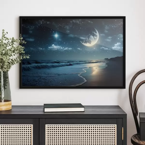 Plakatas Didžiulis mėnulis virš naktinės jūros f31111