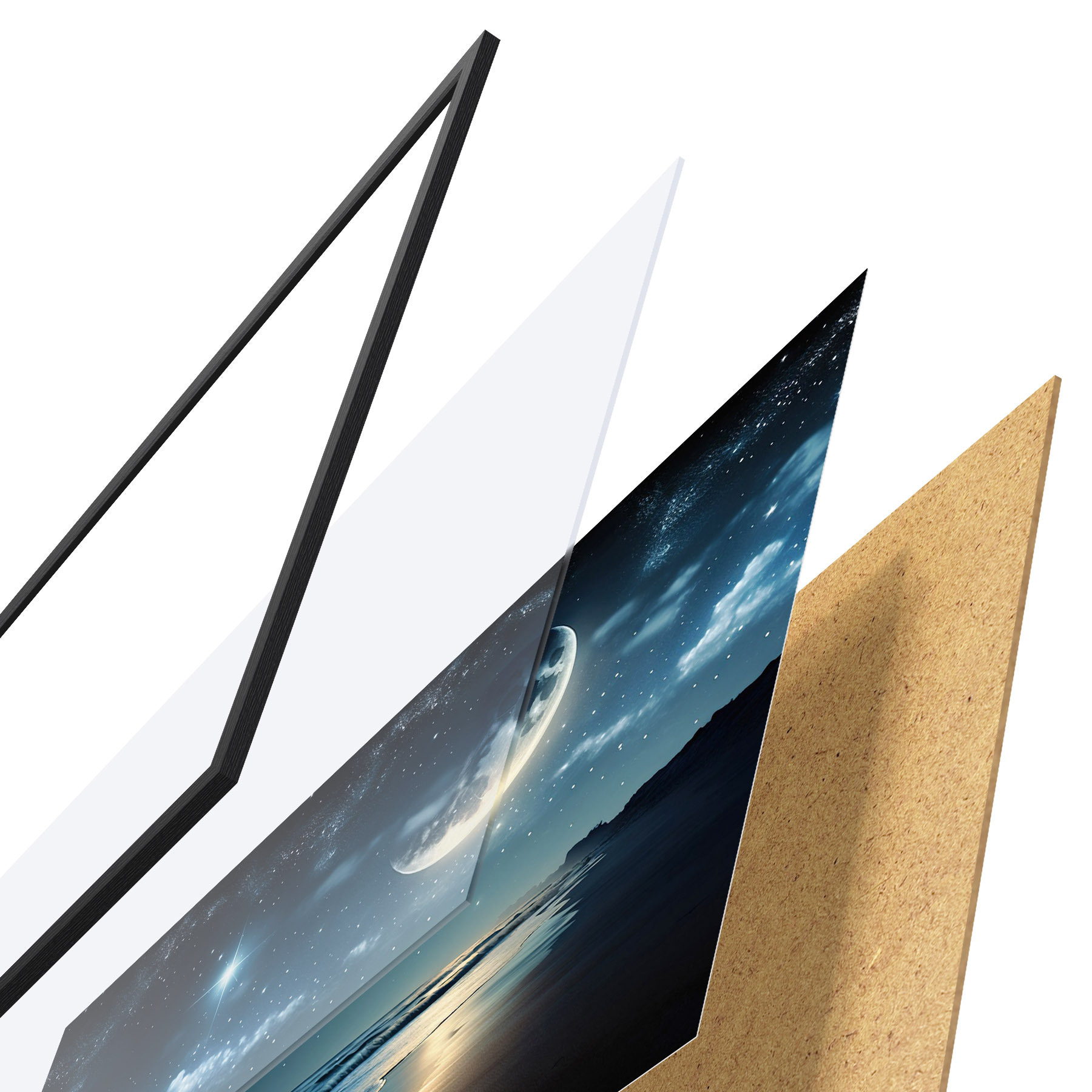 Plakatas Didžiulis mėnulis virš naktinės jūros Ne f31111