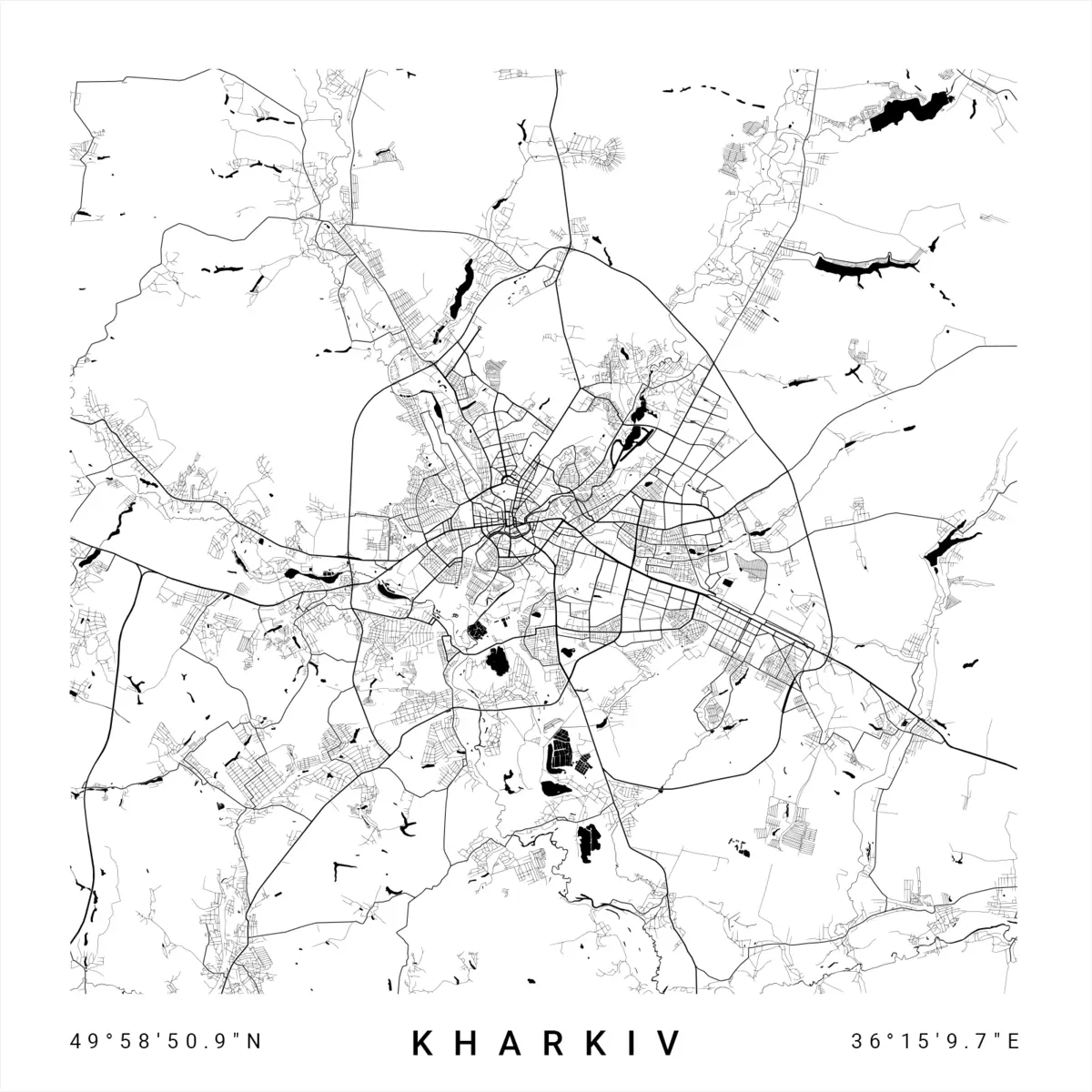 Plakatas Minimalistinis Ukrainos Charkovo miesto žemėlapis Ne f31429v1