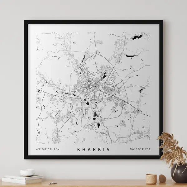 Plakatas Minimalistinis Ukrainos Charkovo miesto žemėlapis f31429v1