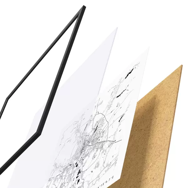 Plakatą sudaro rėmas, pleksiklas, atspausdintas vaizdas ir medžio drožlių plokštės pagrindas. Plakatą galima iš karto pakabinti ant sienos dėl kitoje pusėje esančių laikiklių.