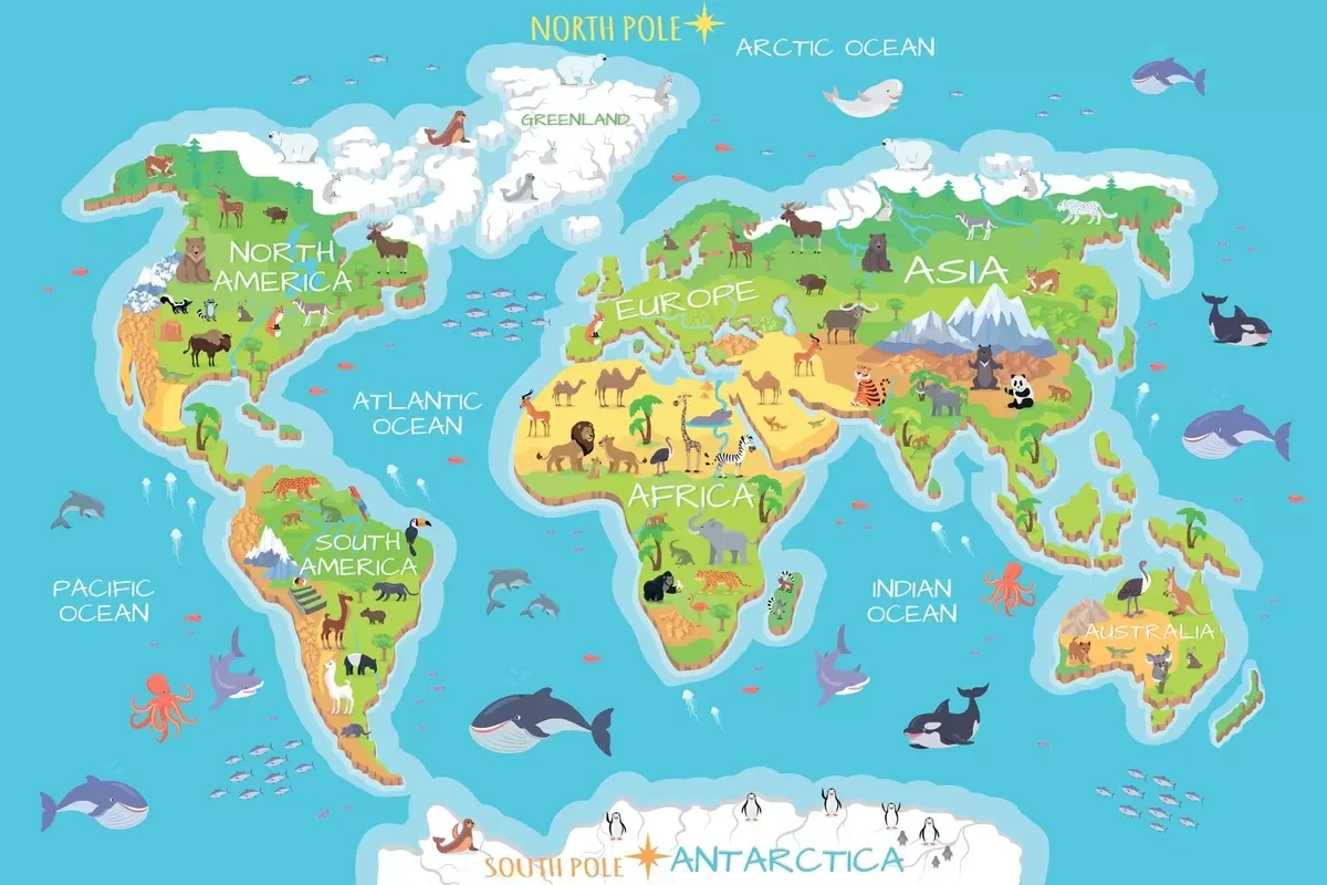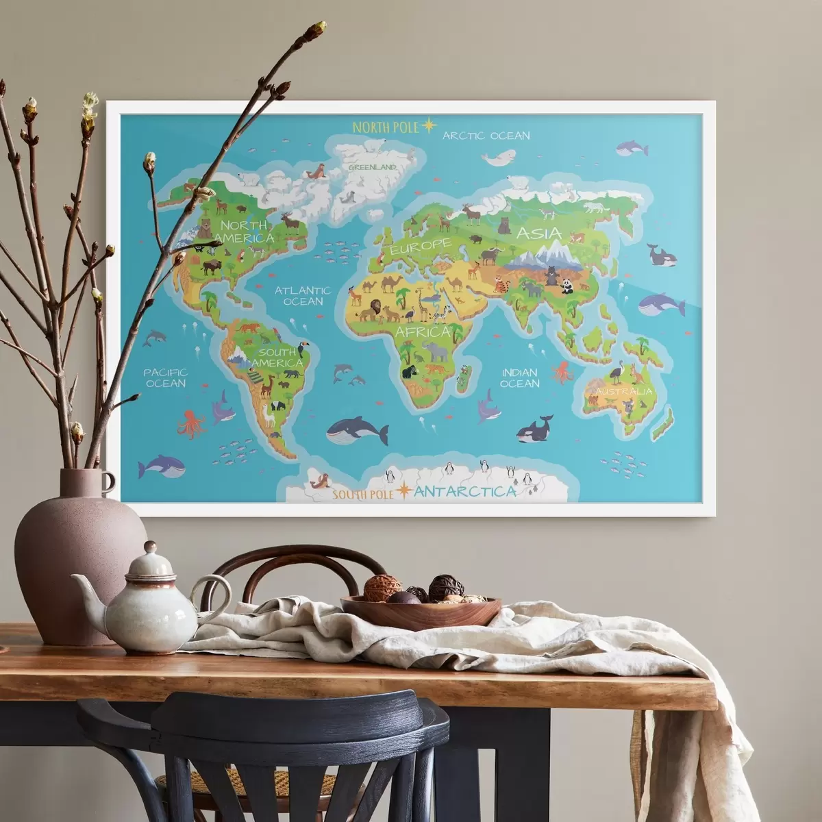Plakatas Žemynų žemėlapis su gyvūnais Ne f32105